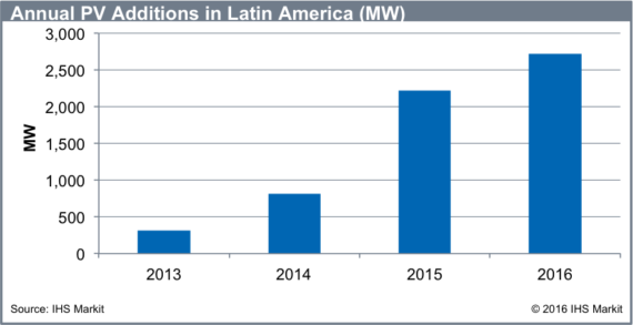 IHS:2016年拉美新增太陽能光伏2.7吉瓦