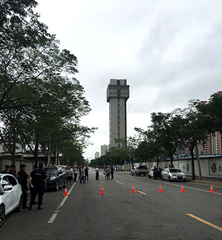 爆破撤除的鄭州電纜廠交聯立塔