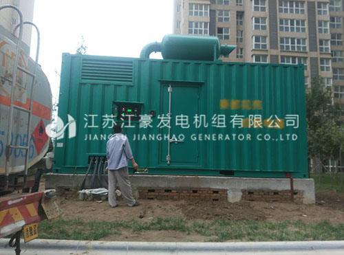 我公司生產的柴油發電機組,出廠前均經工廠調試驗收,合格后發往客戶現場。 圖為西安某小區5臺800KW玉柴集裝箱式低噪音調試現場: